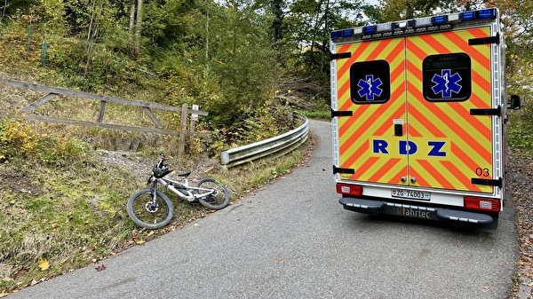 Die FFZ wurde aufgeboten, weil ein Biker auf dem Zugerbergtrail stürzte. Es war keine Intervention notwendig, er konnte selbstständig zum Rettungswagen gehen.