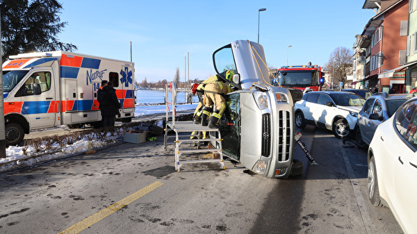 Die FFZ wurde zu einem Strassenrettungseinsatz aufgeboten. Nach einem Abbiegemanöver kollidierte eine Lenkerin mit einem parkierten Fahrzeug und kam mit ihrem Auto auf der Seite liegend zum Stehen. In Zusammenarbeit mit dem Rettungsdienst Zug wurde sie aus dem Auto befreit. Während den Bergungs- und Aufräumarbeiten musste der Verkehr über die Bahnhofstrasse umgeleitet werden.